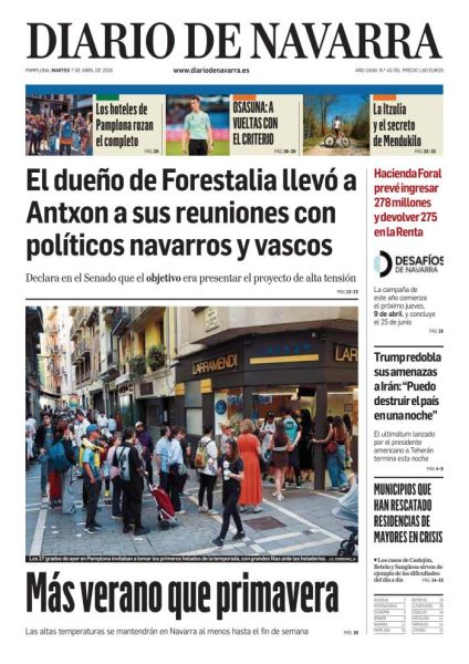 Diario de Navarra, periódico regional líder en su comunidad con más de 113 años de historia. A nivel nacional es el 11 periódico de más importancia y el tercero con mayor número de suscripciones. Actualmente cuenta con tres ediciones, edición Principal, edición Ribera y edición zona Estella. Disfruta de tu periódico de siempre en formato digital Smartphone, Tablet y Pc y de todos los contenidos exclusivos.